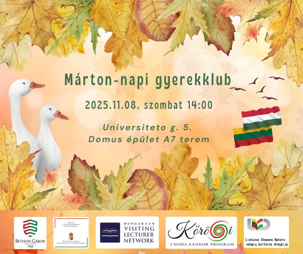 A Márton nap tematikájú gyerekklubot november 8-án (szombaton) 14:00-tól tartjuk a Vilniusi Egyetemen. Ahogy eddig is, a gyerekeknek játékokat, mondókákat és kézműves feladatokat viszünk, a felnőtteknek pedig kávéval és teával készülünk. Egészséges nassolnivalókat, házi süteményt ezúttal is szívesen várunk az eseményen!